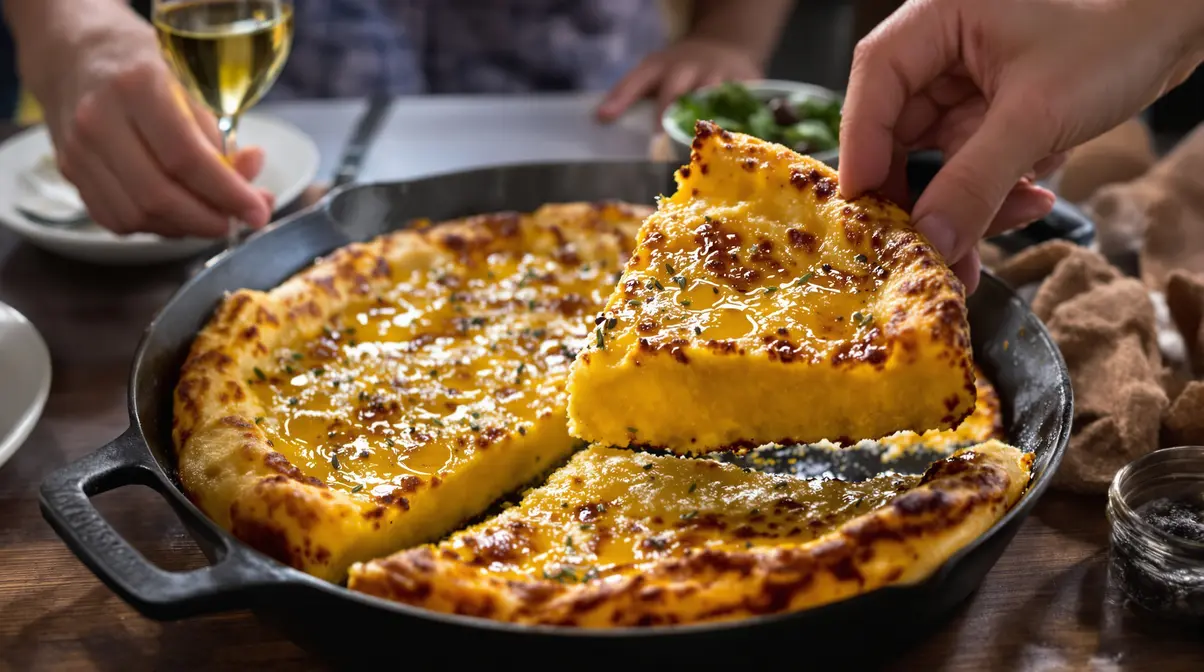 La farinata est meilleure bien chaude. Dès sa sortie du four, elle embaume la cuisine avec des notes de noisette et d’huile d’olive. C’est le genre d’odeur qui rassemble tout le monde autour de la table sans qu’on ait besoin d’appeler deux fois.