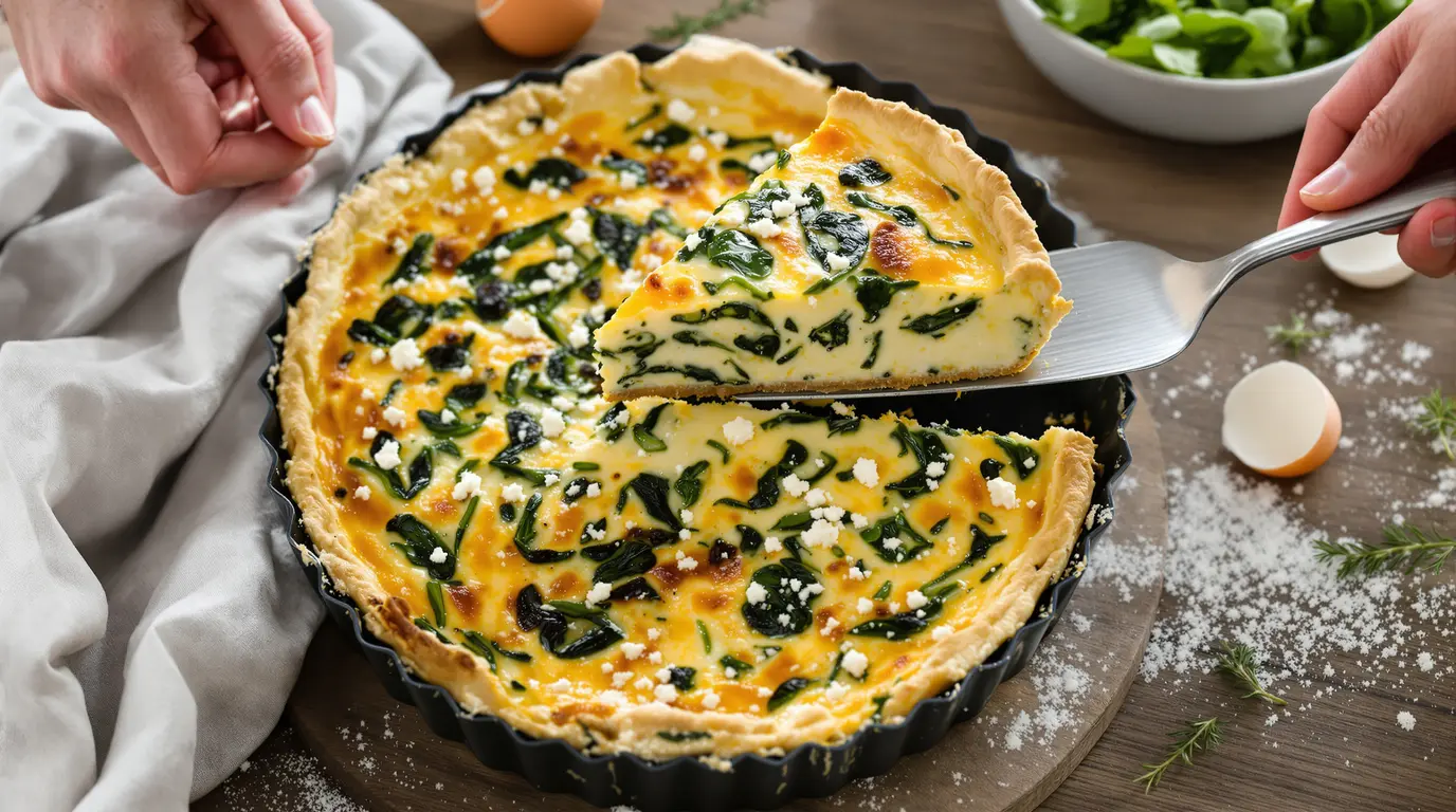 Le résultat est surprenant. Vous obtenez une texture entre le flan salé et la crêpe épaisse, avec des épinards tendres et de la feta bien présente. C’est léger, mais pas fade. C’est rapide, mais pas triste.